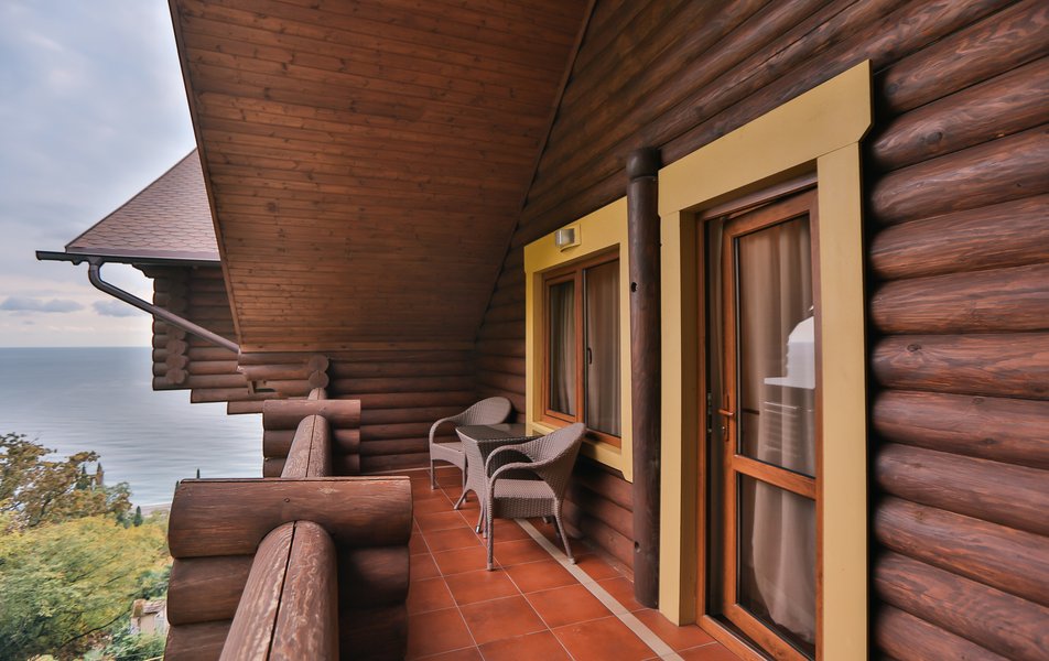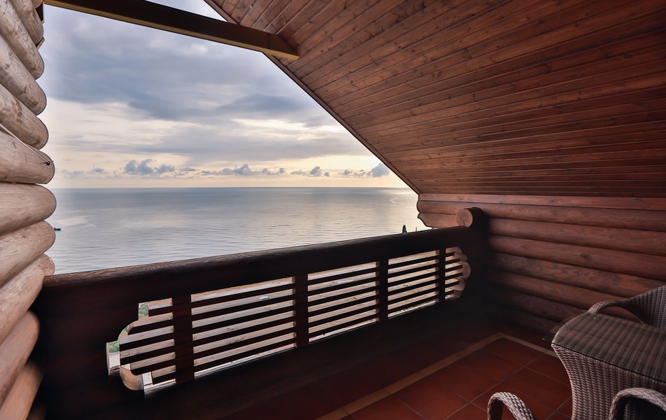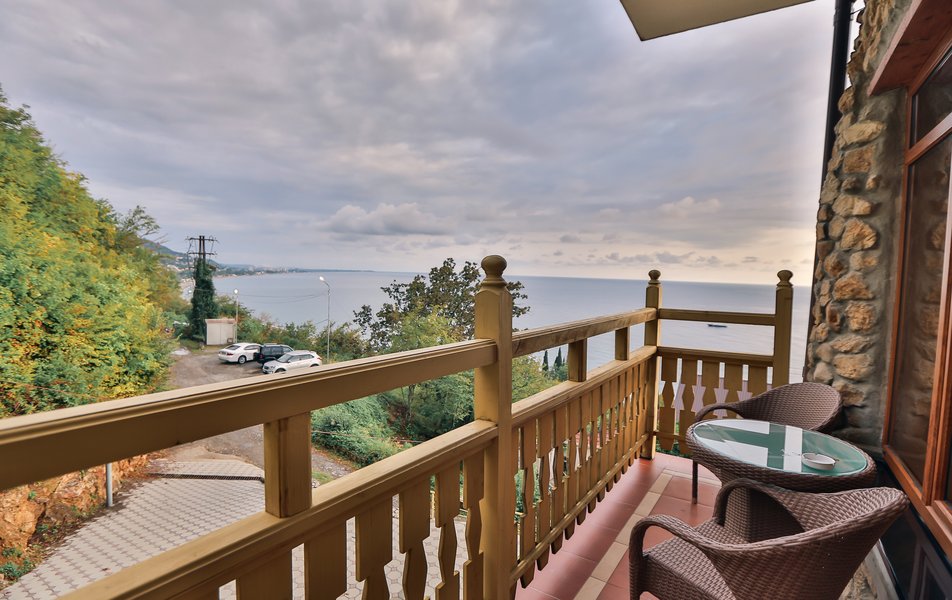 Совет сразу: бронируйте по телефону либо через электронную почту, сайт взламывают периодически как нам сообщили, а вот на ресурсах для брони пишет, что номеров нет, хотя это не так. Теперь к отзыву: я ездила в Абхазию в детстве и мы жили в домиках с удобствами на улице, поэтому слабые воспоминания трепыхали мою душу и я хотела отдохнуть в более-менее приличном отеле, поэтому искала основательно. Т.к ехали мы в апреле море нам было не важно, важно было, чтобы было где погулять и что посмотреть. Выбирала между этим отелем и ещё одним в Новой Гагре, но про второй написали в отзыве, что там злые хозяева, а здесь очень приятные. Выбор сделан. Добрались интуитивно от Колоннады по ступенькам, на картах этих ступенек нет. Заселились, и я была поражена, очень крепкий большой дом из сруба, пахнет деревом внутри. Красивая планировка, мебель, плитка в санузле, просторные номера, прикроватные комоды, встроенный шкаф, есть холодильник и полка под телевизором, ещё какие-то места для хранения, стол, стул, большая кровать, два прикроватных бра, зеркало в пол, вешалки, полотенца для рук, больших полотенца 2, напольное одно, тапочки 2 пары. Короче я не знаю чего нет, есть все. А ещё просторный балкон со столом и двумя плетёными креслами и встроенной вытягивающейся веревкой, чтобы летом можно было сушить полотенца. Внизу есть ресепшен и ресторан, но он ещё не работал, так что мы пользовались им для того, чтобы налить с собой воды в дорогу и попросить штопор для вина и нож для сыра. Хозяева кстати очень приятные, отец и сын, все нам показали, рассказали где лучше поесть, где лучше покупать вино, и где не стоит. Но я все же упомяну, про сложности с которыми мы столкнулись проживая 4 дня. У нас не было мыла, мы попросили и нам дали флакончик с жидким мылом, по факту это оказалась мыльная вода, как будто просто поставили отмокать, ну нас заверили, что утром придёт горничная и добавит туда мыла, утро прошло- не добавила, вечером стало понятно, что это не мылится совсем, горничной нет, на ресепшене никого, нам пришлось пойти на преступление и самим взять мыло и рулон туалетки, которая кончилась, уже утром это было очевидно, но все равно простите нас за это. Вторая сложность была с холодильником, как я ни крутила он все равно не остужал еду. Мучиться не стали, просто не пользовались, хранили на балконе, там было по ночам свежо. По поводу расположения, отель находится на горе, это неизбежно из-за строения береговой линии, так что да, либо 300 ступенек вверх, либо мы часто поднимались с площади Гагарина, потому как ходили в местный магазин за едой и вином и там более-менее пологий подъем вверх. Зато рядом есть колоннада, автобусная остановка, чтобы уехать в другие города, заброшенный отель Скала, старые руины замка принца Ольденбургского, заброшенная станция Гагра, жоэкварское ущелье, приморский парк.