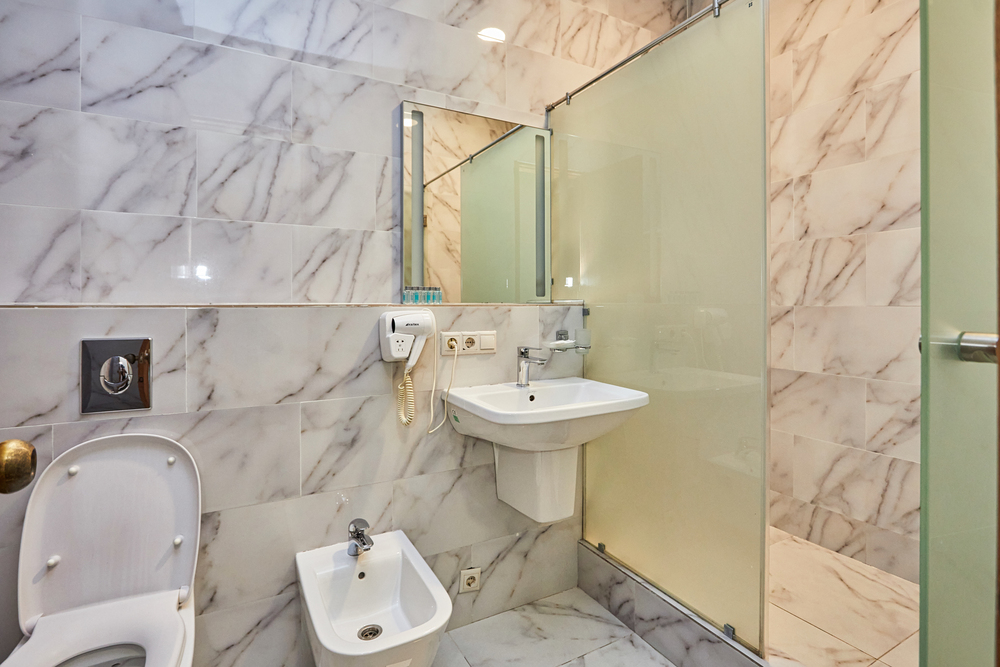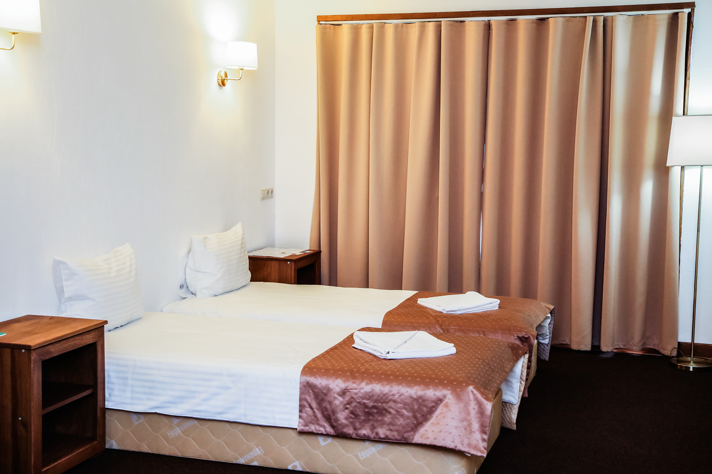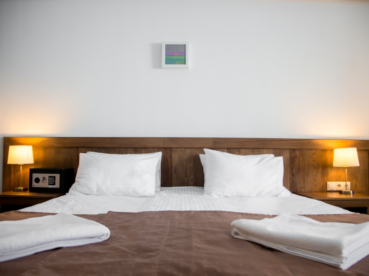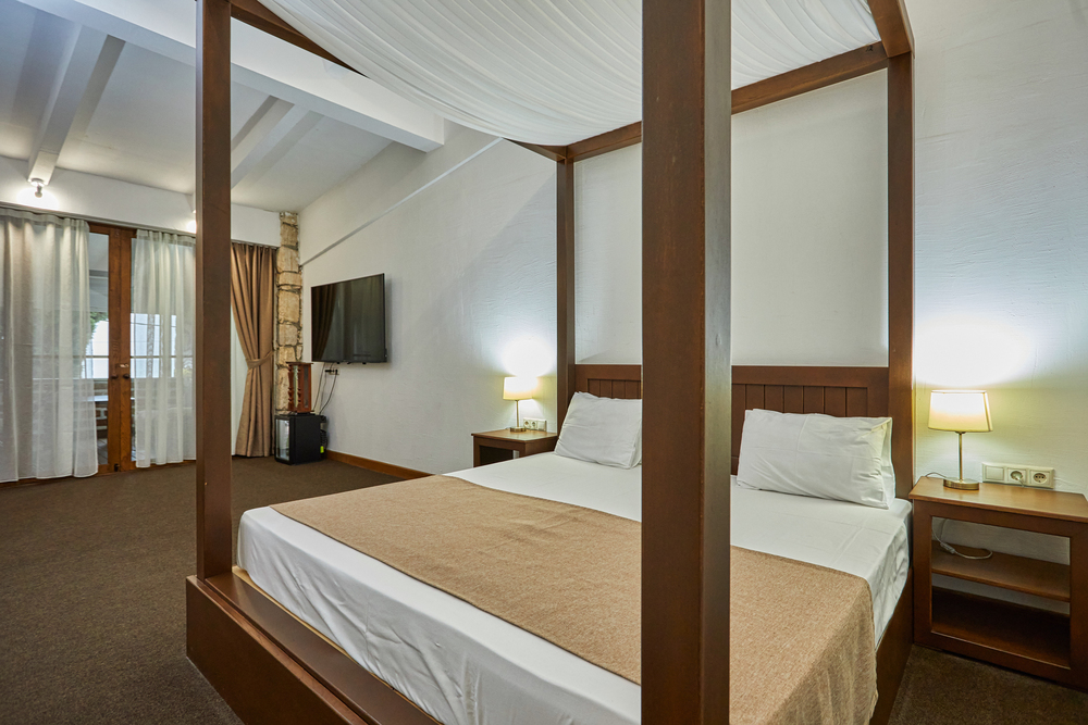 В комплектации однокомнатного номера балкон, Wi-Fi, кондиционер, мини-бар, телевизор, набор для чая и кофе, сушилка для белья. Гости размещаются на двуспальной кровати (можно разделить). В ванной комнате душ, туалетные принадлежности, фен, тапочки.