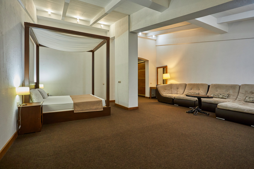 Однокомнатный люкс с балконом, спальней, ванной комнатой с душем. Для размещения предлагается две односпальные кровати (их можно сдвинуть вместе). В числе удобств кондиционер, мини-бар, сейф, сушилка для белья, телевизор, чайник, Wi-Fi, фен, тапочки и туалетные принадлежности.