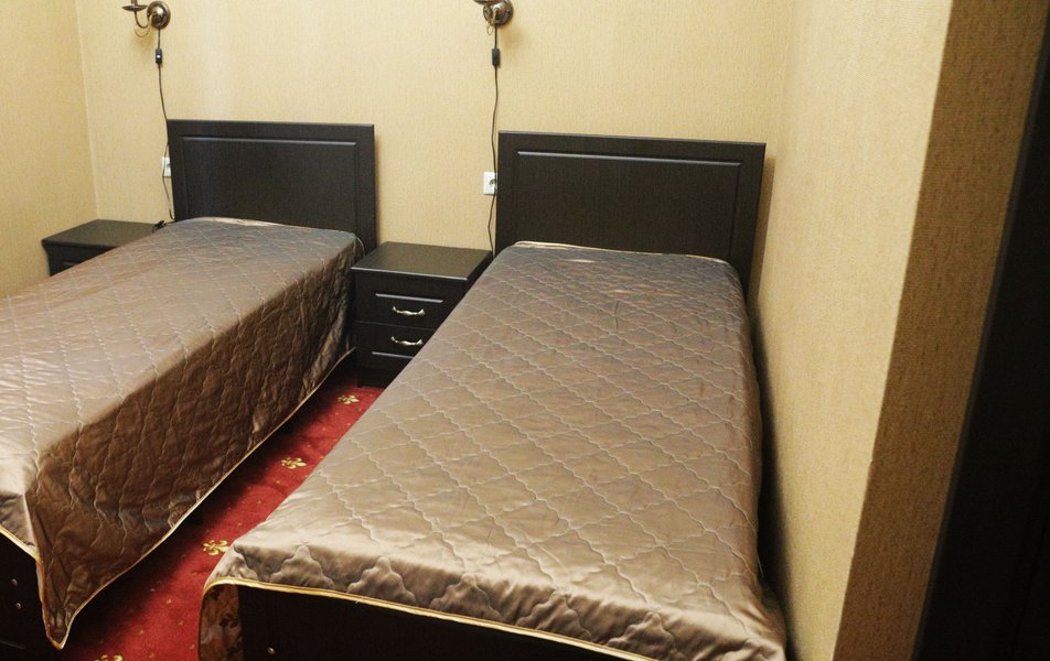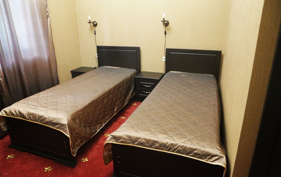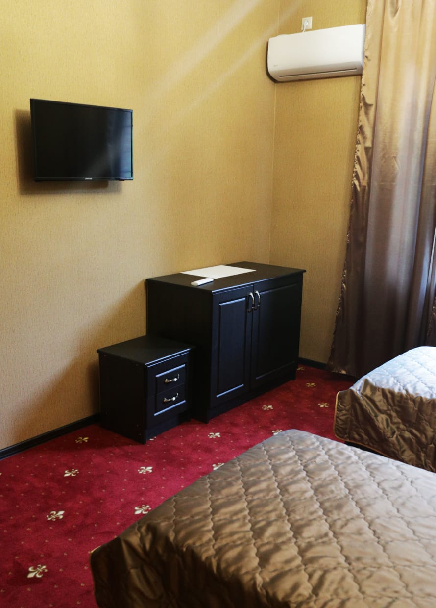 Однокомнатный номер с двуспальной/2 односпальными кроватями, ванной комнатой с душем (часть номеров расположены на мансарде и оборудованы балконом). В удобства включены Wi-Fi, кондиционер, телевизор, холодильник, фен. Возможно размещение на дополнительной раскладной кровати.