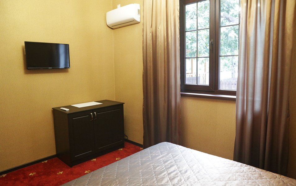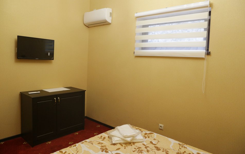 В однокомнатном номере гости размещаются на двуспальной кровати (дополнительное спальное место - раскладная кровать), санузел оборудован душем в части номеров есть балкон. Из удобств Wi-Fi, телевизор, кондиционер, холодильник, фен.