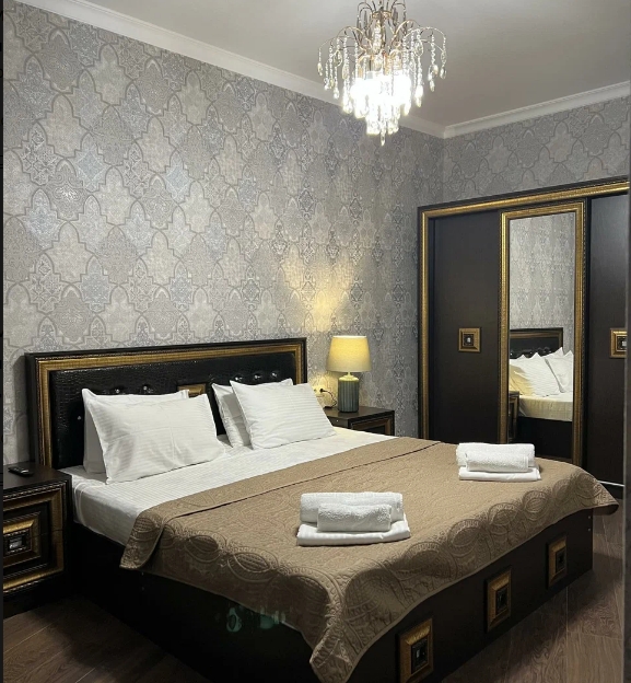 Двухкомнатный номер включает в себя спальню, кухню, обеденную зону, ванную комнату с душем. Гости размещаются на двуспальной кровати. В комплектации балкон, телевизор, кондиционер, отопление, сейф, Wi-Fi, холодильник, набор для приготовления чая и кофе, микроволновая печь, фен, тапочки, халаты, косметические принадлежности.