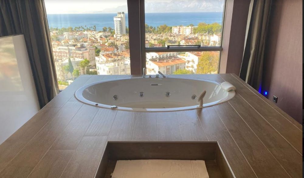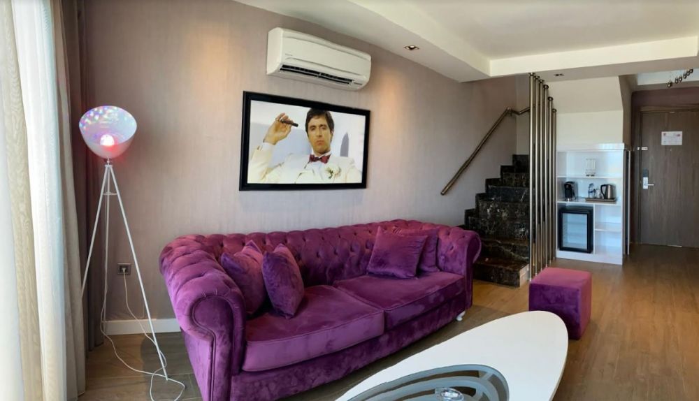 Люкс включает спальню с двуспальной кроватью, гостиную с диваном, ванную комнату с душем, меблированный балкон. В распоряжении гостей беспроводной интернет, кондиционер, телевизор, телефон, мини-бар, сейф, чайный набор. Предоставляются фен, набор гостиничной косметики.